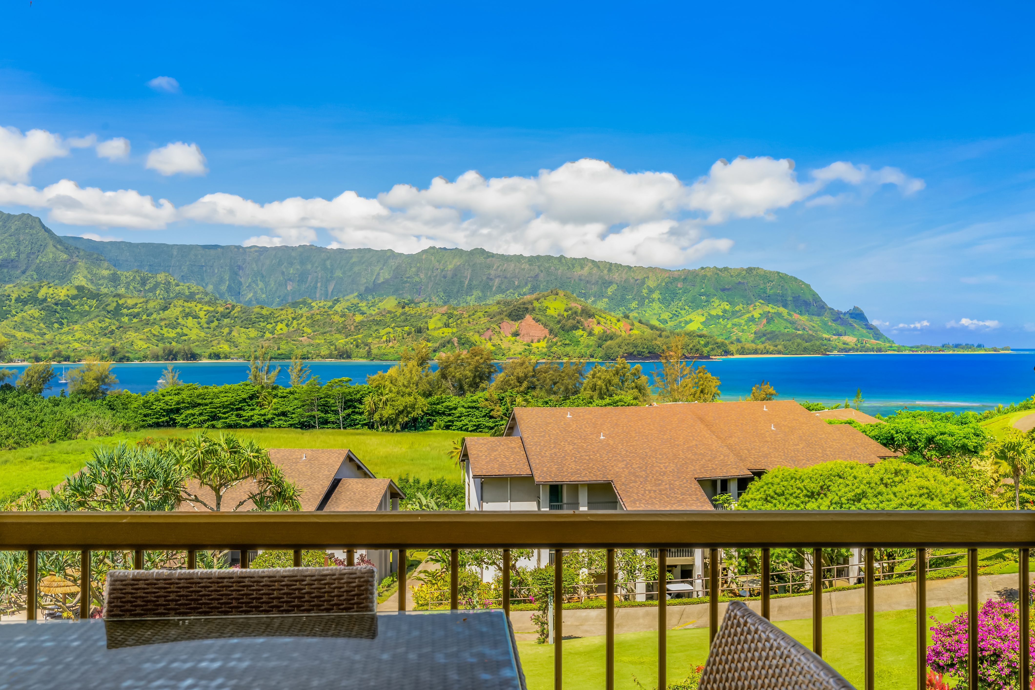 2 bedroom condo, 2 bathrooms, full kitchen and private lanais overlooking Bali Hai and Hanalei Bay.One bedroom side with living room, kitchen with laundry, full bath. Lockout studio suite with king bed, kitchenette, private bathroom and its own washer/dryer.
