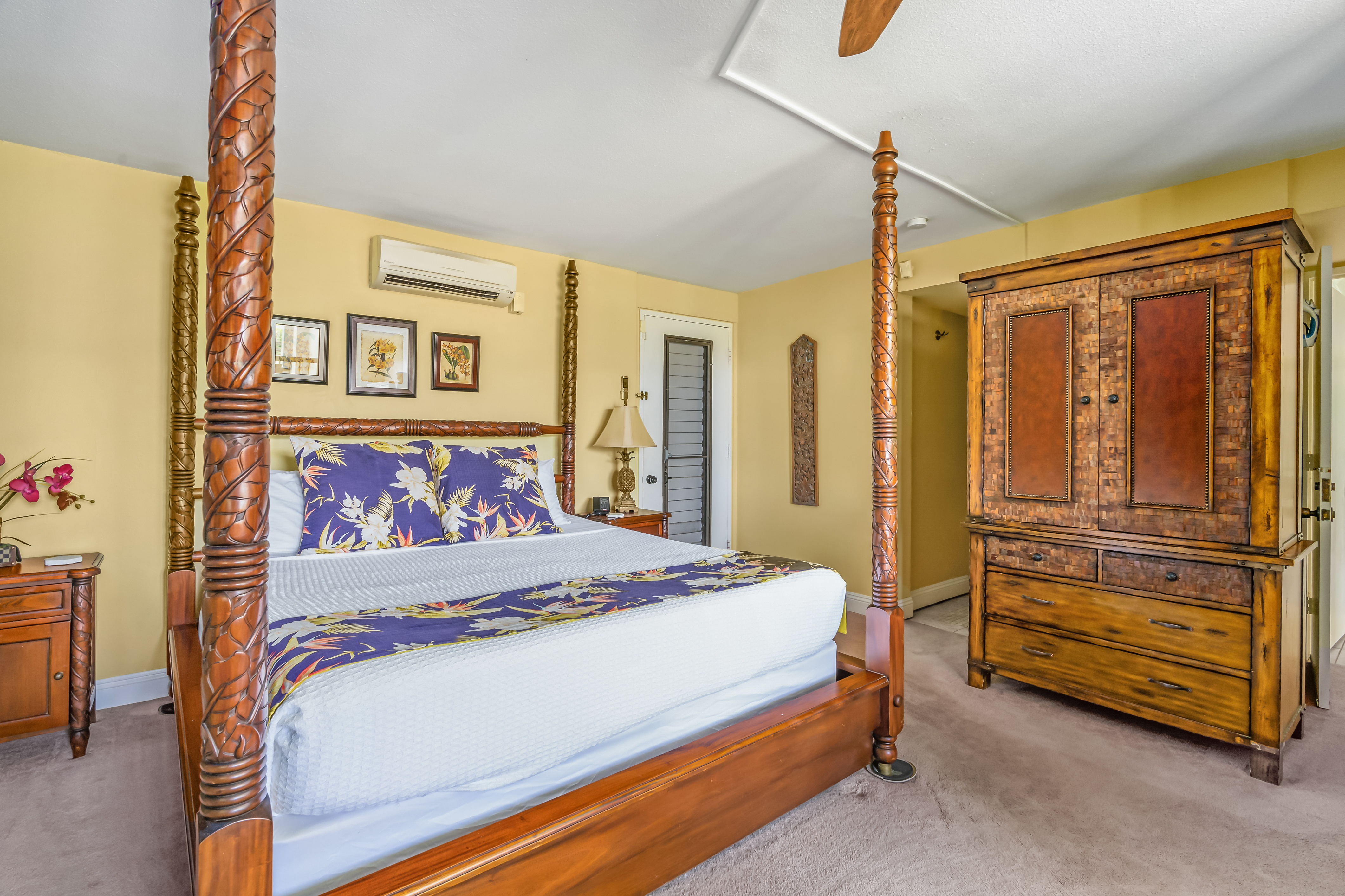 Hanalei Bay Resort 6204 is a studio suite with a lockout door from the one bedroom side of the condo. Perfect for couples vacationing together. Suite includes a private bathroom with walk in shower, kitchenette with its own mini refrigerator and coffee maker, and private lanai with view of Bali Hai and Hanalei Bay